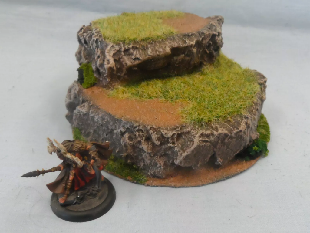 The image above features a piece of tabletop terrain from findersbane over on eBay and is made from High Density Styrofoam and Herculite casting plaster and then painted and flocked up and as you can see works well as a base for photographing miniatures!