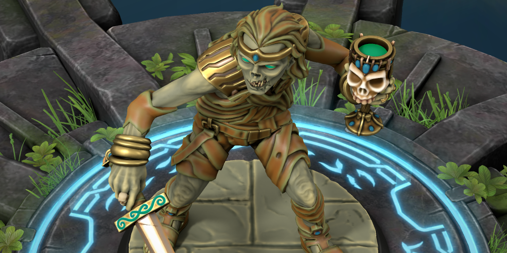 I’ve tried to make a connection between his glowing eyes and the sword hilt and the goblet with the liquid being the distilled essence of life that he’s drained from the heroes, but it’s up to you how you portray him at the end of the day!