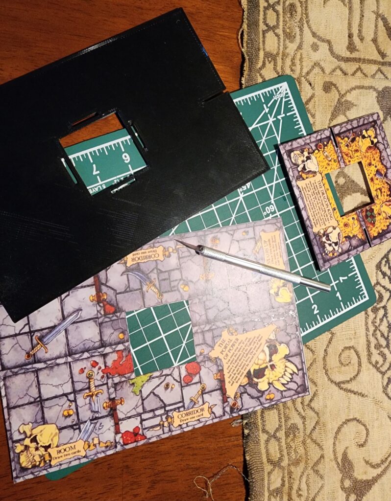 Printing the different pieces of artwork for the tower can be a little trickier. They were not scanned in the same dimensions as the tower pieces, so you’ll need to fiddle with print sizes in the print manager on your computer. For example, the baseboard image, if I recall, had to be printed at 127% to match the actual size of the 3D-printed tower base piece. I printed all of the “test” labels on regular legal-sized paper.