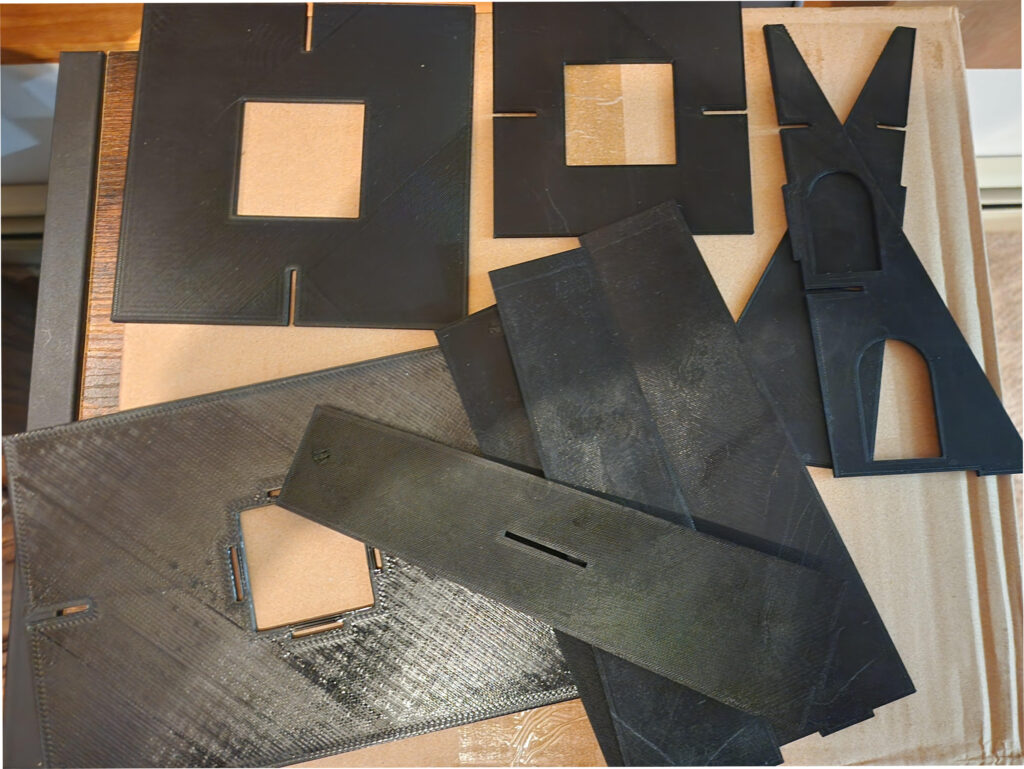 Another problem with the final 3D prints is that none of the “notches” designed to hold the tower together fit or could be installed perfectly. You’ll need to trim down the connecting pieces to make sure they fit properly into one another. For example, the triangular sides had notches that were too long to fit into the slots on the side of the tower pieces – I needed to use the razor knife to trim them down to ensure a proper fit. I’d recommend “pre-building” the tower without glue to ensure everything fits together well.