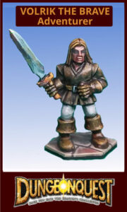 The Fantasy Flight Games version included 6 miniatures based on their world of Terrinoth – each of the characters in their DungeonQuest game has equivalent characters in the dungeon crawler Descent: Journeys in the Dark (2nd Edition).
