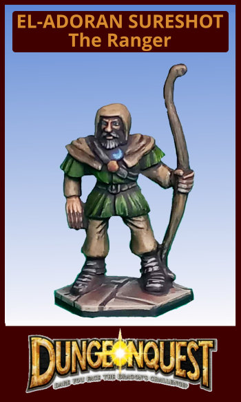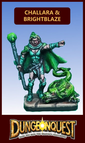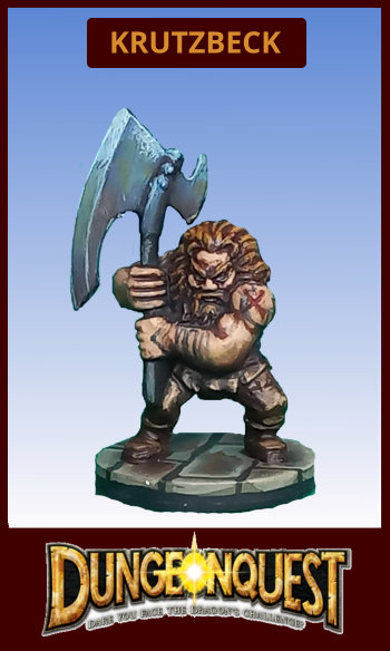 The Games Workshop release of DungeonQuest included 4 plastic miniatures. The expansion Heroes for DungeonQuest includes 12 metal Citadel Miniatures and character cards for each and new cards and tokens for the base game.