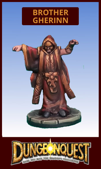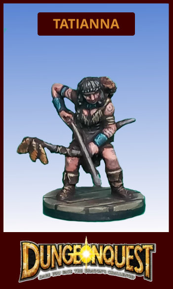 The Fantasy Flight Games version included 6 miniatures based on their world of Terrinoth – each of the characters in their DungeonQuest game has equivalent characters in the dungeon crawler Descent: Journeys in the Dark (2nd Edition).