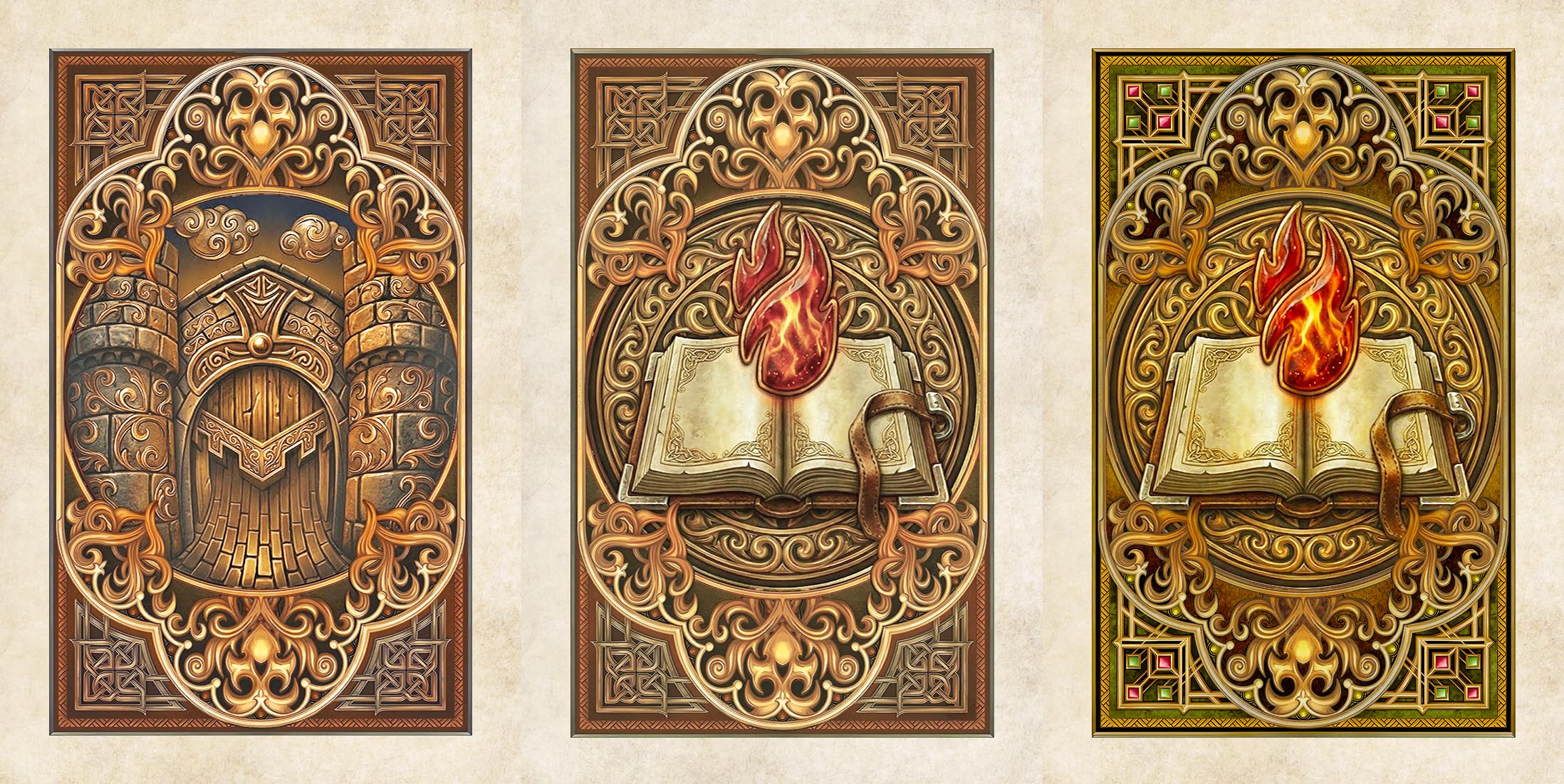 The cards for the Shop decks use the Purchase card front, but the corners of the card backs are based on Adventure cards, rather than Purchase cards.